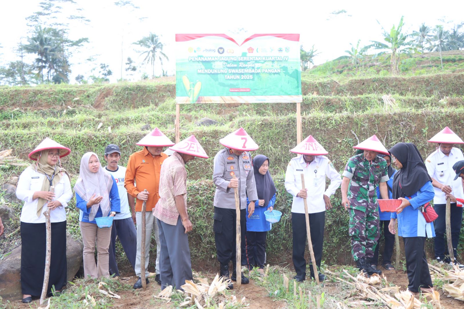Banjarnegara – Polres Banjarnegara melakukan kegiatan penanaman jagung di Desa Cendana Kecamatan Banjarnegara Kabupaten Banjarnegara, Rabu (8/10/2025).