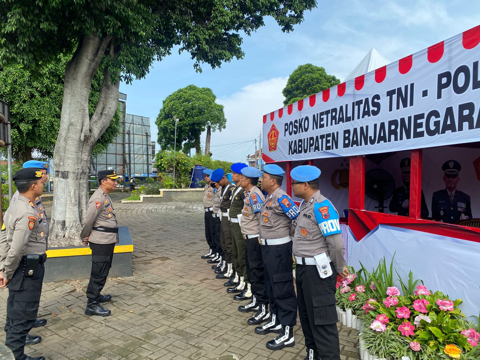 Banjarnegara – Polres Banjarnegara bersama Kodim 0704/ Banjarnegara mendirikan posko netralitas TNI-Polri di Alun-alun Banjarnegara.