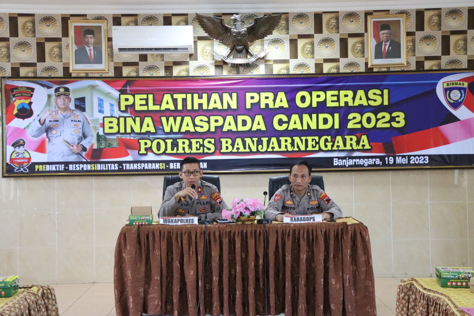 Banjarnegara – Polres Banjarnegara menggelar kegiatan Latihan Pra Operasi Bina Waspada Candi 2023 di Aula Samghara Marga Rupa Mapolres Banjarnegara, Jumat (19/5/2023).