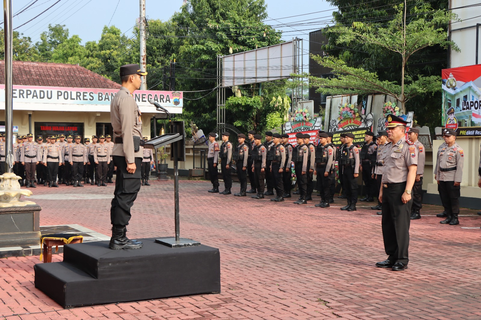 Bertindak sebagai inspektur upacara Wakapolres Kompol Rizeth Aribowo Sangalang, S.Pd, SIK, MH, CPHR yang diikuti oleh Para Kabag, Kasat, Kapolsek Jajaran, Perwira Staf dan anggota.