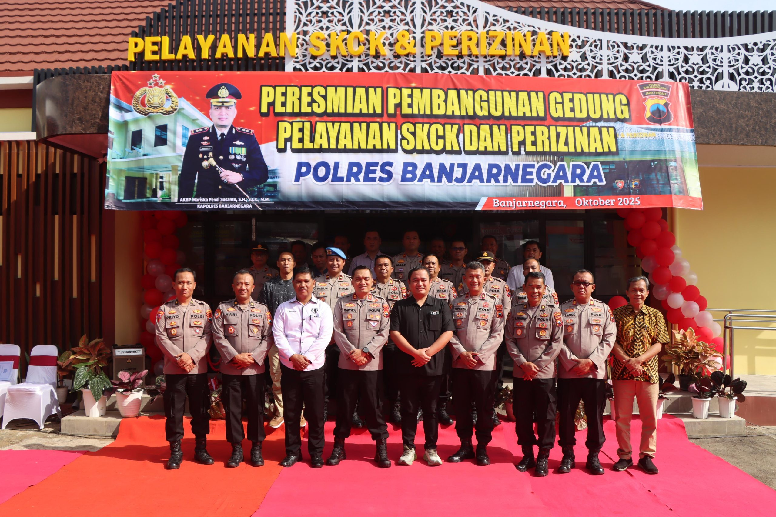 Peresmian Gedung Pelayanan SKCK dan Perizinian ditandai dengan pemotongan pita dan penandatangaan oleh Kapolres Banjarnegara disaksikan pejabat utama, tamu undangan, personel dan Bhayangkari, di kompleks Mapolres Polres Banjarnegara, Jumat (31/10/20225).