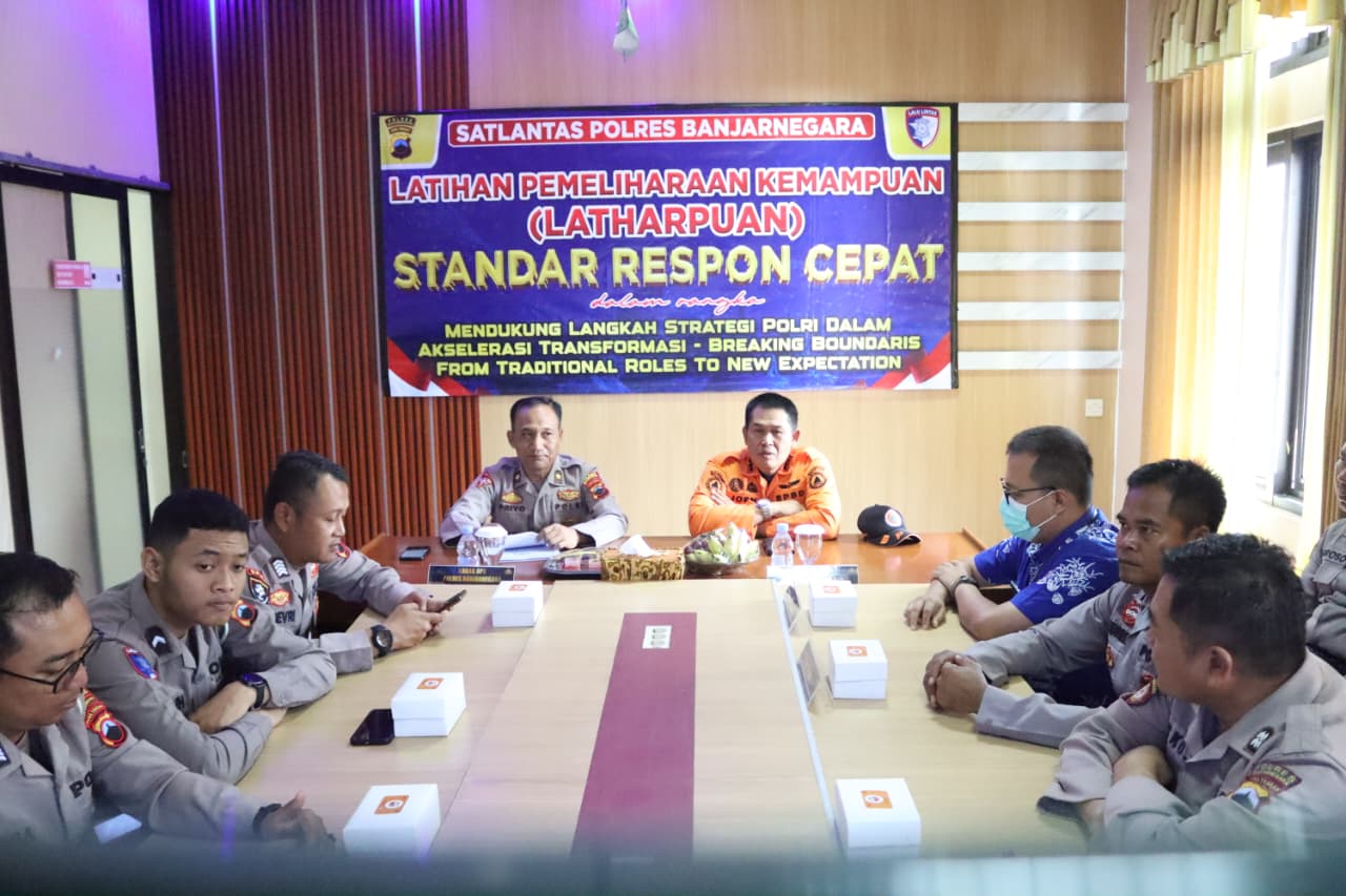 Banjarnegara – Sebagai upaya meningkatkan personel Polres Banjarnegara latihan peningkatan kemampuan (latharpuan) tentang standar respon cepat di ruang posko Mapolres Banjarnegara, Kamis (15/10/2025).